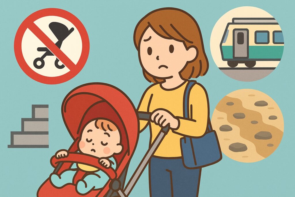 ベビーカーでの外出で避けるべきNGな場所について、詳しく説明します。普段よく利用する場所でも、意外な危険が潜んでいることがあります。