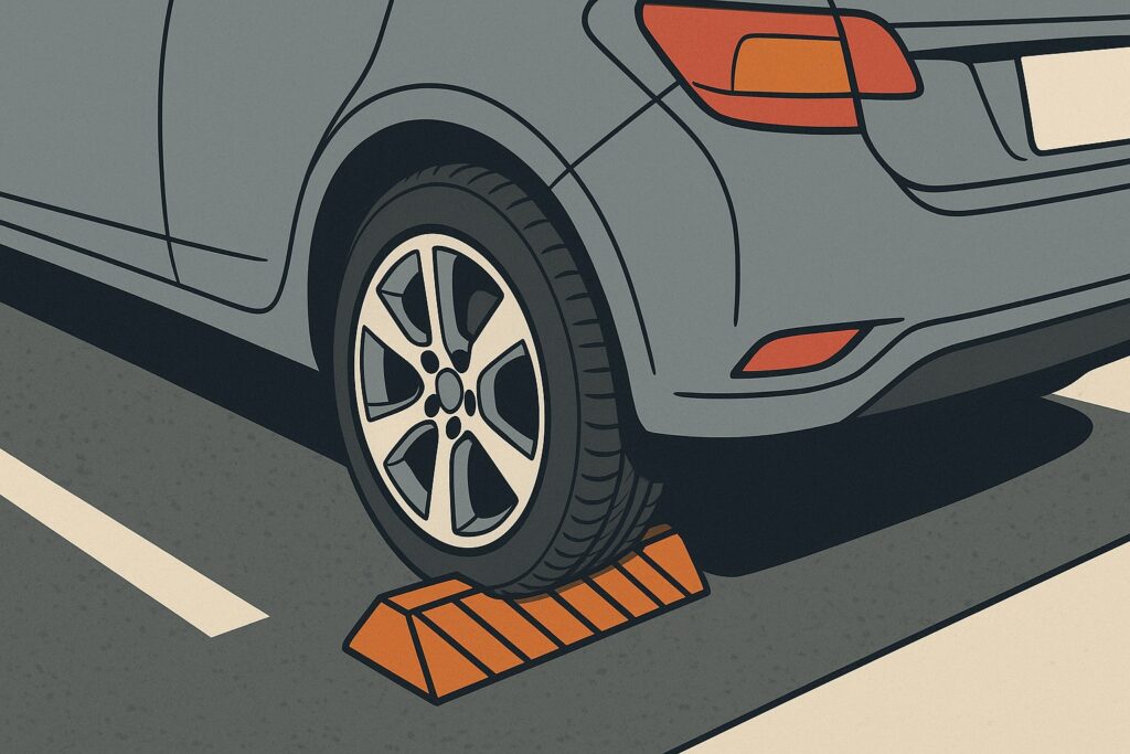 長期間この状態が続くと、タイヤの寿命が短くなるだけでなく、走行時の振動や不安定さを引き起こす原因にもなります。車止めから数cm手前で停車するクセをつけると、車の部品寿命は大幅に伸びます。
