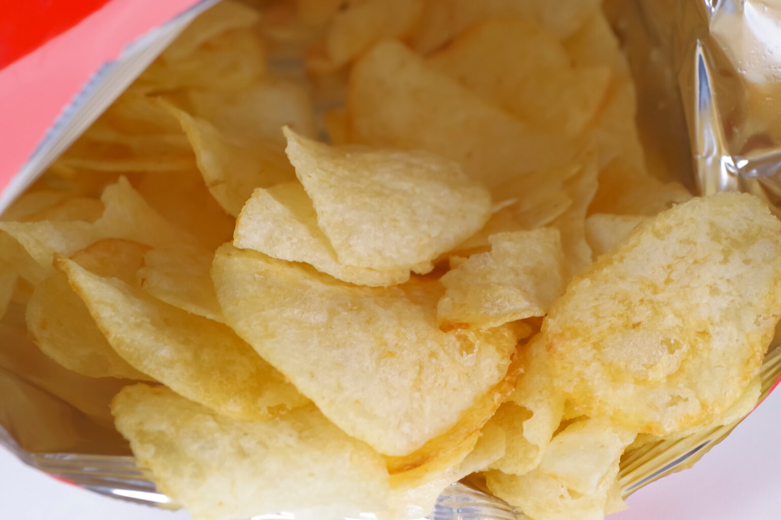 ポテチはもともと水分が1〜3%ほどしかない乾燥食品。揚げた直後はサクサクですが、袋を開けた瞬間から空気中の湿気を吸い始め、わずか数時間で「しんなり」へ変化します。