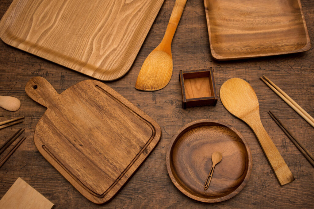 1. 木製や竹製の食器(箸・まな板など)