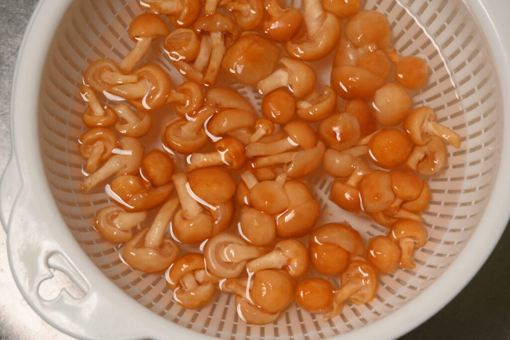 なめこを洗うときは、使う直前に行うのが基本です。ザルにあけて流水でさっとほぐす程度で十分で、強い流水や指でこする洗い方は避けます。