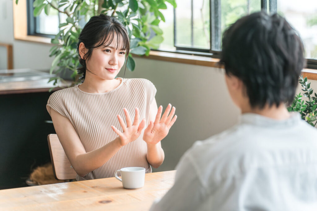 踏み込まれたくない話題は、短く止めるのが効果的です。説明を長くすると、議論になったり、からかわれたりして余計に面倒になります。淡々と伝えるだけで十分です。
