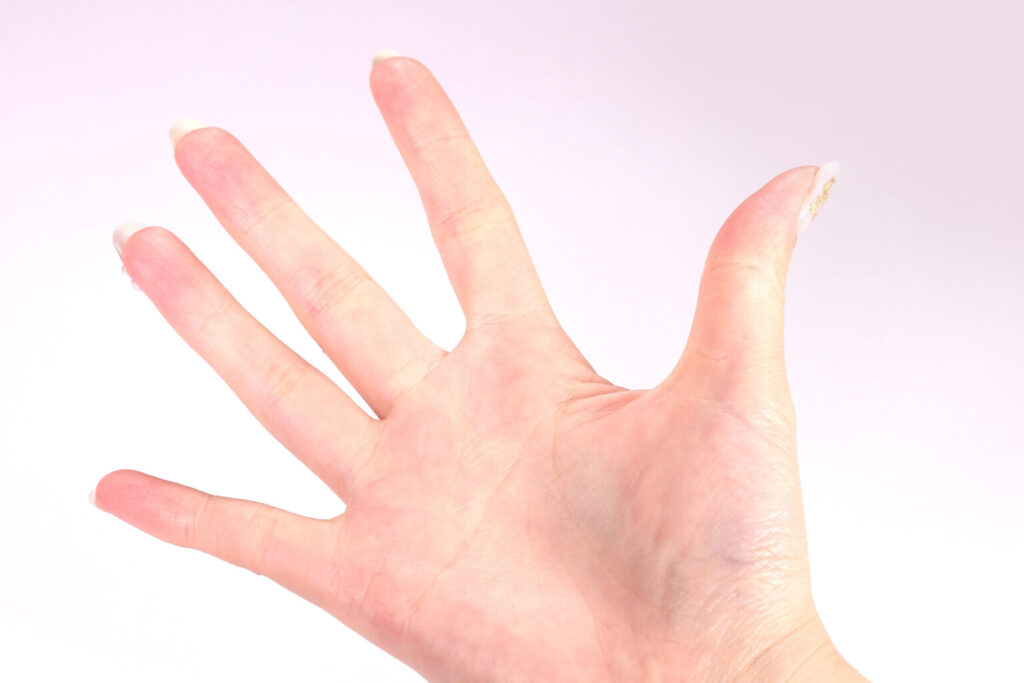 - 手を強く握りしめる