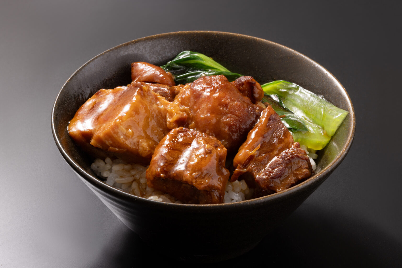 最後に器に白髪ねぎを敷いて角煮と半分に切った卵を盛り付け、煮汁をかけて香菜を添えれば、箸で切れるほどトロトロな角煮の完成です。