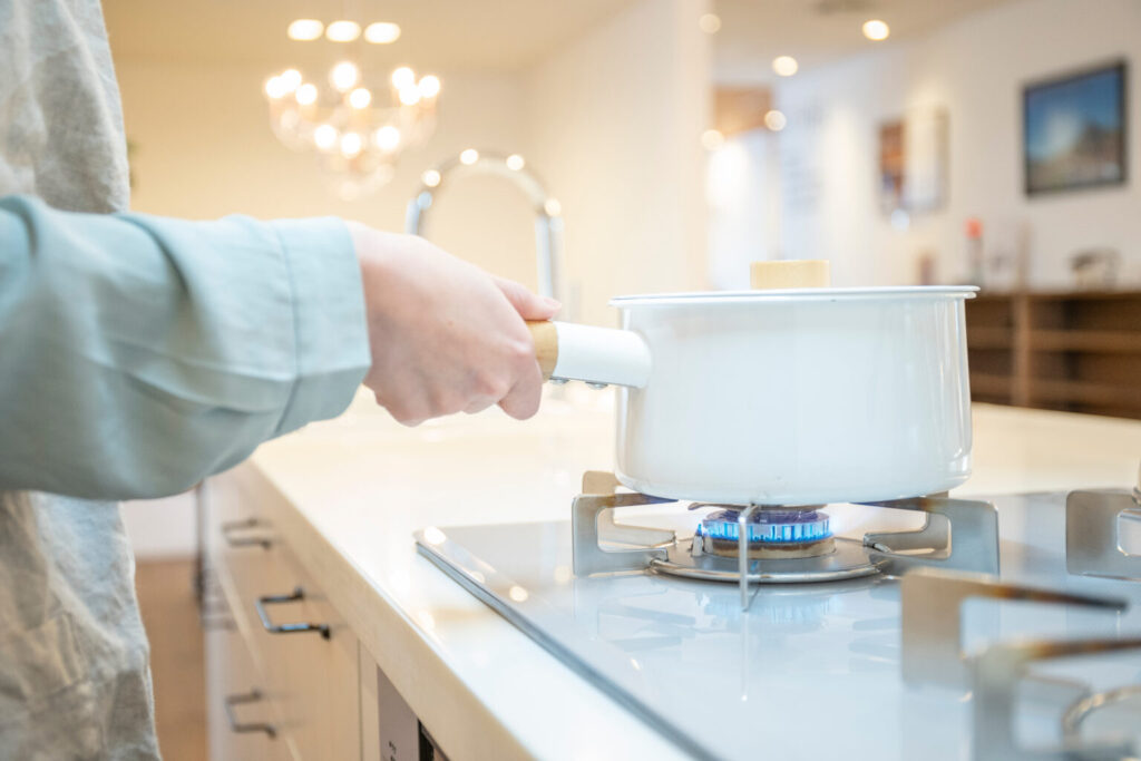 ガスコンロは、目で見て火の様子がわかるので、料理初心者でも火加減の調整がしやすいのが特徴といえます。直火での調理が可能で、災害時電気が止まってもガスが生きていれば食材の調理が可能です。