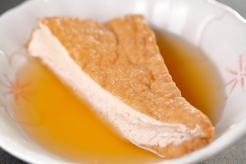豆腐の優しい味わいと、揚げ油のコクを同時に楽しめる厚揚げは、おでんには欠かせない万能選手です。豆腐ベースの具材は出汁を吸い込む力が非常に強く、口に入れた瞬間のジューシーな食感が魅力。