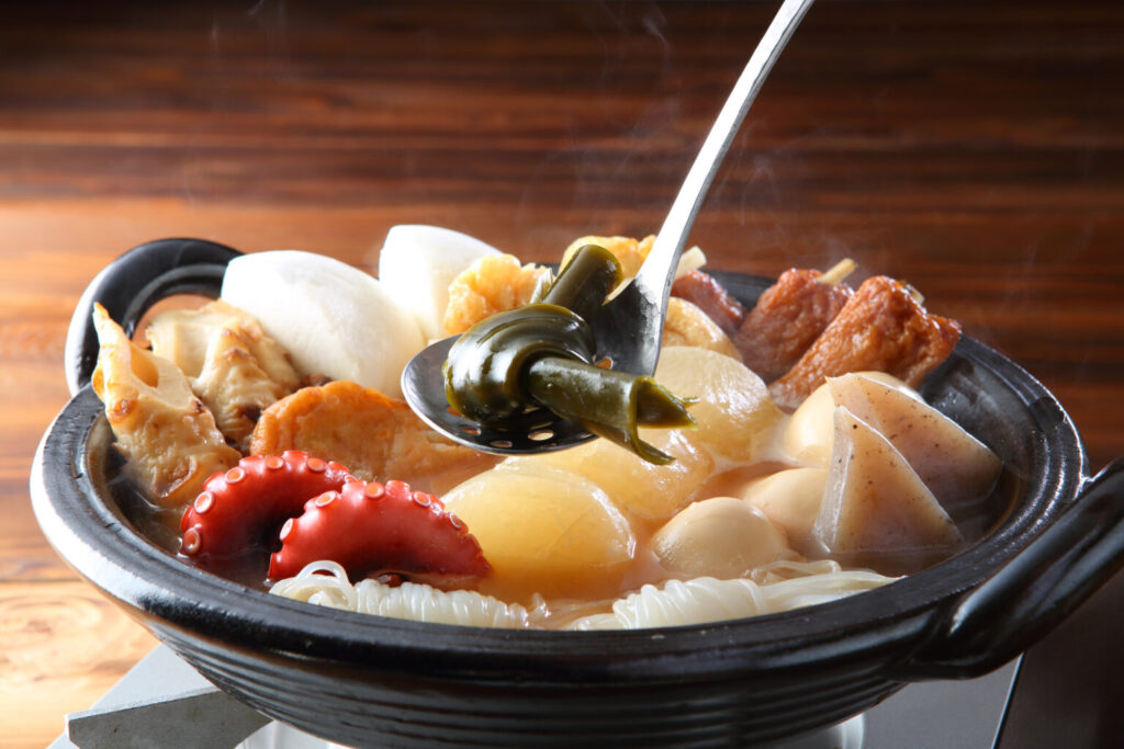 まずは、味が染みにくい大根やこんにゃく、卵、そして旨味を出す牛すじを最初に入れます。中盤にはさつま揚げなどの練り物を投入。そして、煮崩れしやすいもち巾着や、食感が命のはんぺんは、食べる30分ほど前に入れるのが正解です。