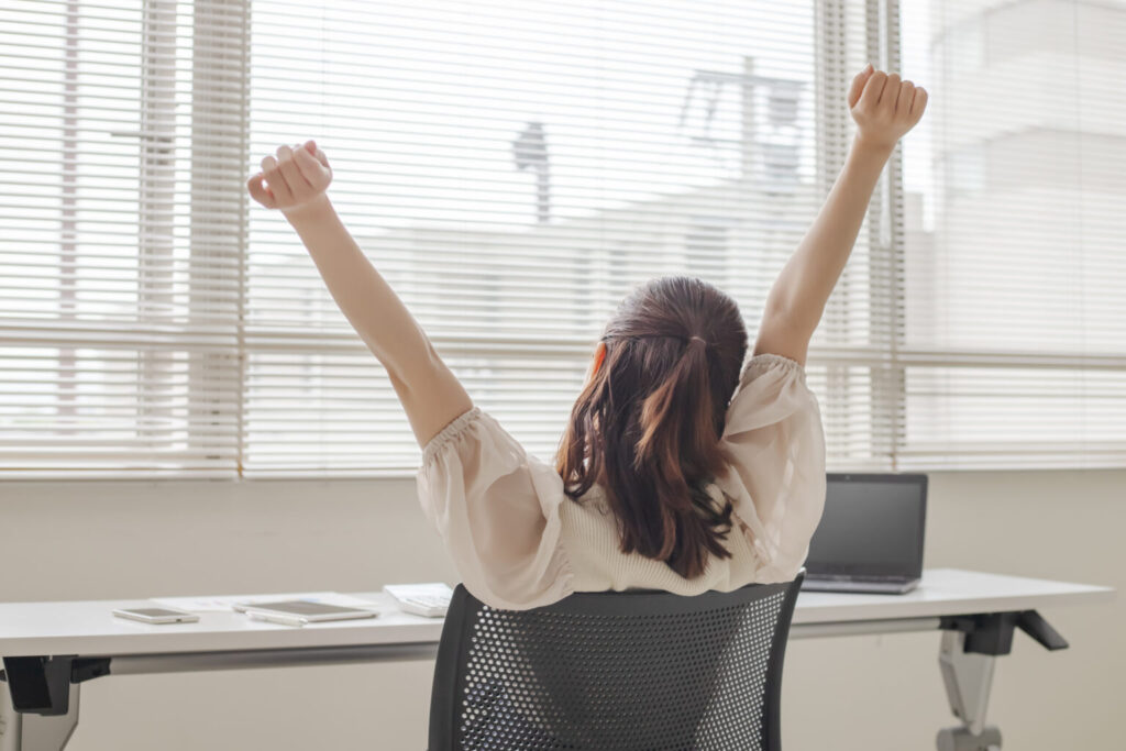 - 思い切り背伸びをする