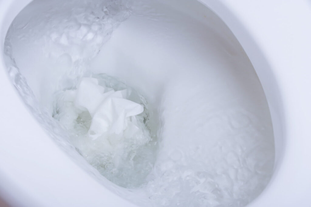 トイレットペーパーは、水に溶けて消える魔法の紙ではありません。水流の刺激を受けてバラバラに「ほぐれやすい」性質を持っているだけです。