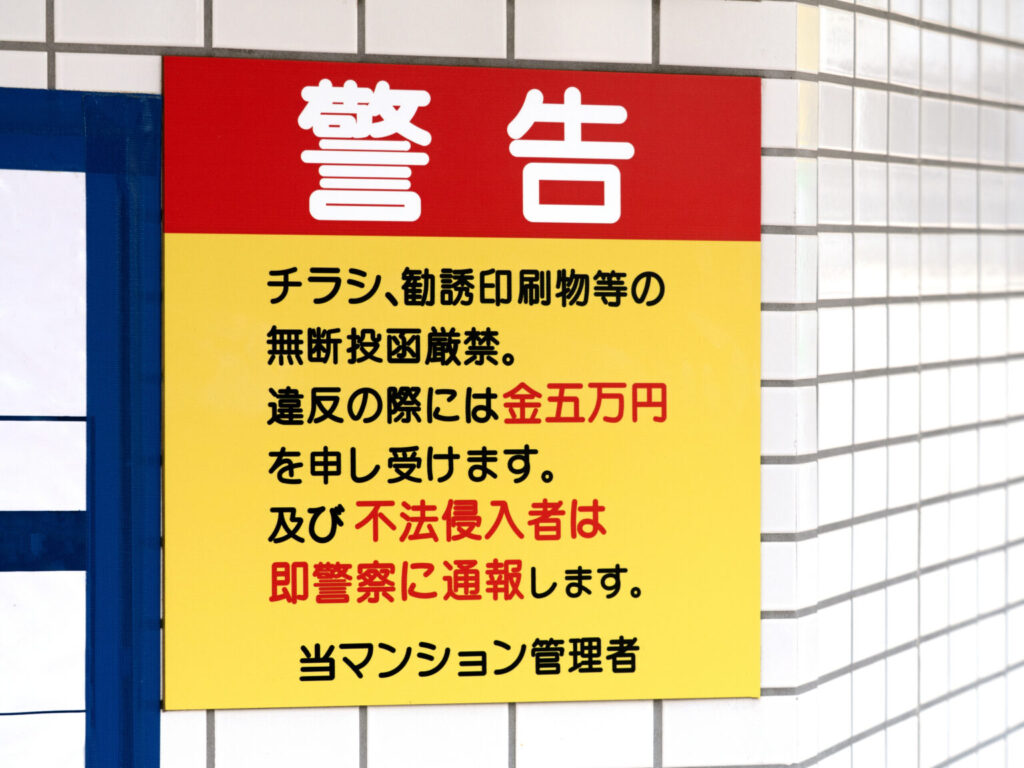 相手を威圧するのではなく、「チラシ投函はお断りします」と冷静に事実を伝えるほうが、結果として住人の「管理の目」を感じさせ、投函を思いとどまらせる力になります。